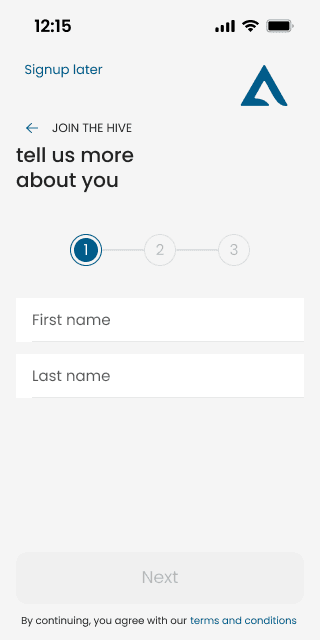 User onboarding flow with minimal questions.