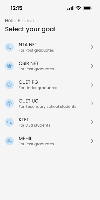 ✅Minimal Q&A (exam goal, name, dob and state) gathers essential information to display personalized course recommendations.