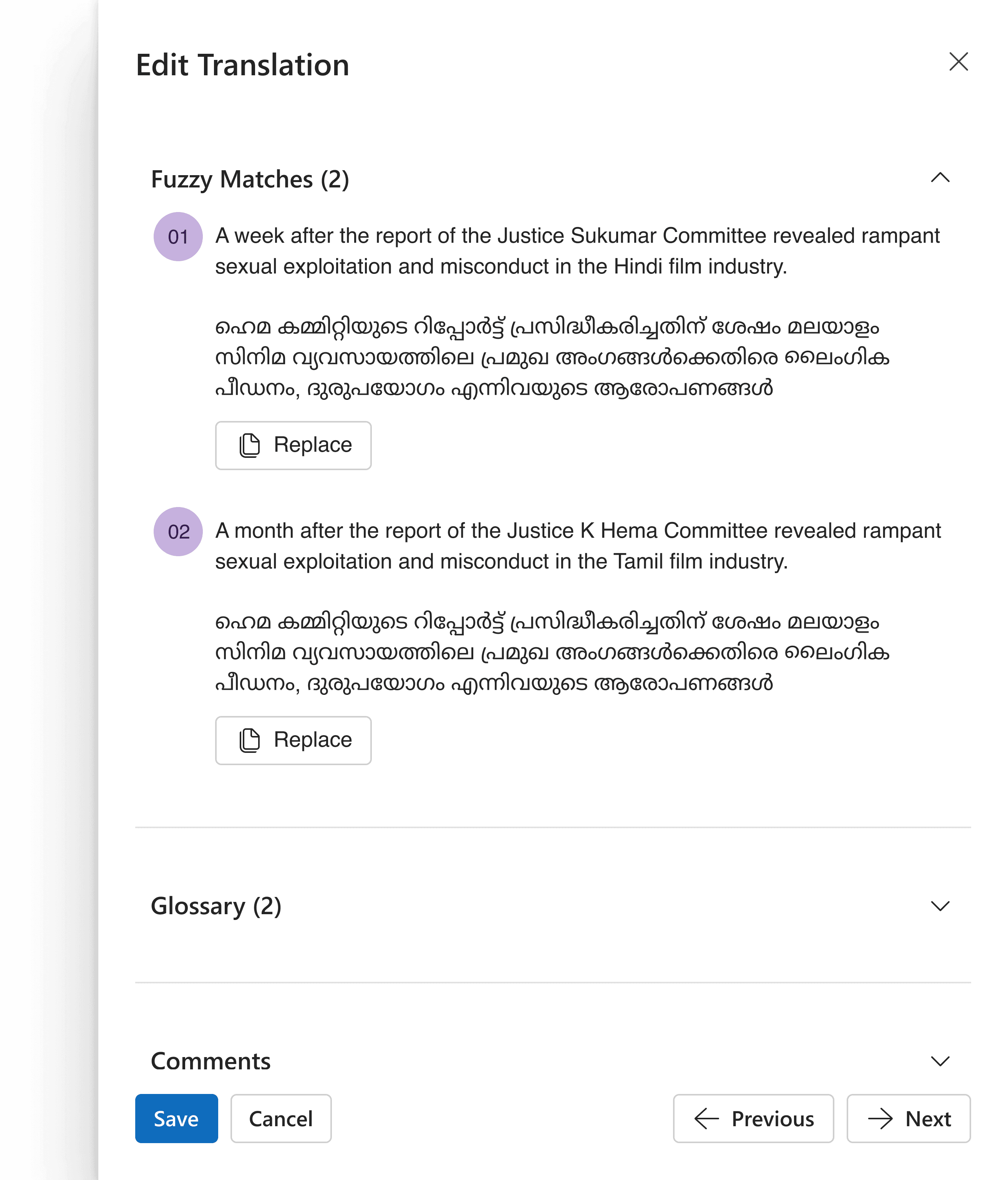 ✅Added fuzzy matches to highlight segments that closely match existing translations but may require minor adjustments.
